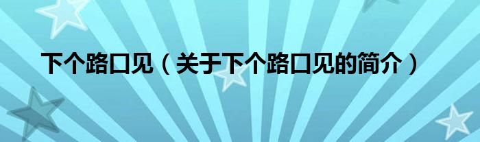 大家好,下個(gè)路口見,關(guān)于下個(gè)路口見的簡(jiǎn)介很多人還不知道,現(xiàn)在讓我們一起來(lái)看看吧!