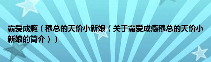 大家好,霸愛成癮 穆總的天價(jià)小新娘,關(guān)于霸愛成癮 穆總的天價(jià)小新娘的簡(jiǎn)介很多人還不知道,現(xiàn)在讓我們一起來看看吧!