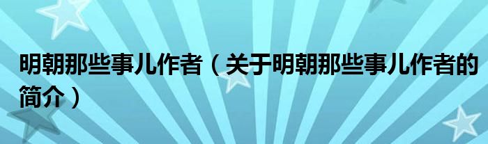 大家好,明朝那些事兒作者,關(guān)于明朝那些事兒作者的簡介很多人還不知道,現(xiàn)在讓我們一起來看看吧!