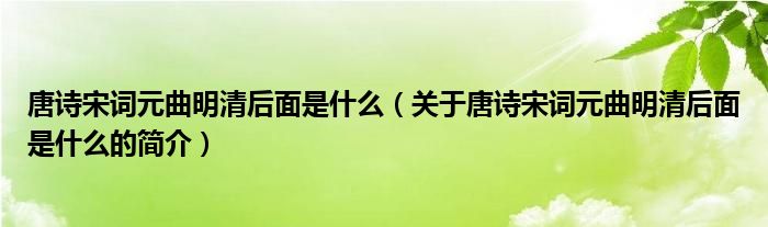 本文關于唐詩宋詞元曲明清后面是什么的簡介就講解完畢,希望對大家有所幫助。