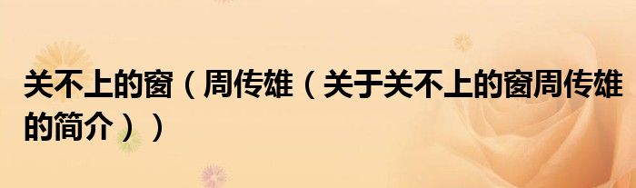 大家好,關不上的窗 周傳雄,關于關不上的窗 周傳雄的簡介很多人還不知道,現在讓我們一起來看看吧!