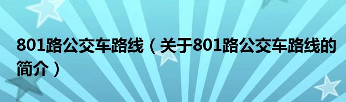 本文關于801路公交車路線的簡介就講解完畢,希望對大家有所幫助。