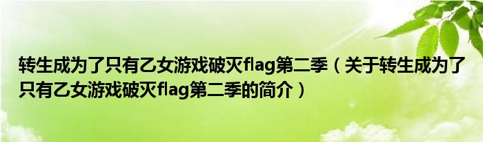 本文關于轉生成為了只有乙女游戲破滅flag第二季的簡介就講解完畢,希望對大家有所幫助。