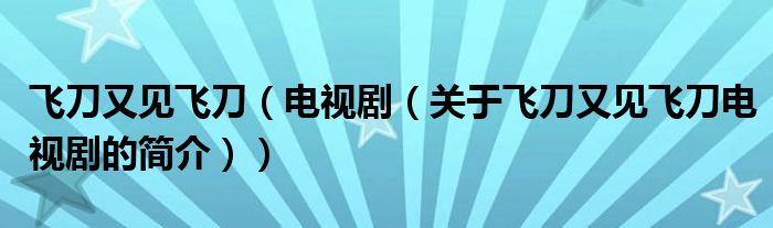 本文關于飛刀又見飛刀 電視劇的簡介就講解完畢,希望對大家有所幫助。