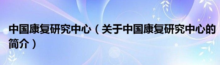 大家好,中國康復研究中心,關于中國康復研究中心的簡介很多人還不知道,現在讓我們一起來看看吧!