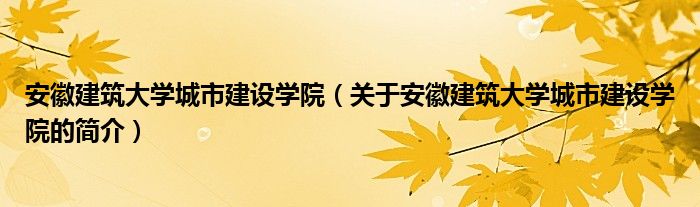 本文關于安徽建筑大學城市建設學院的簡介就講解完畢,希望對大家有所幫助。