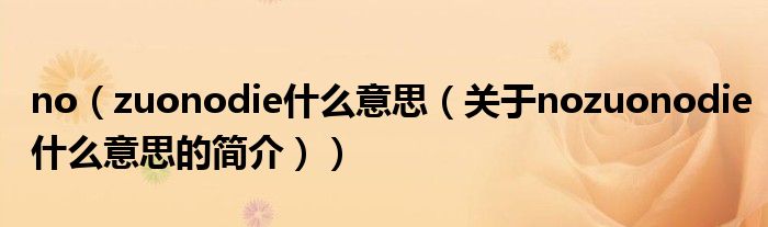 本文關于no zuo no die什么意思的簡介就講解完畢,希望對大家有所幫助。