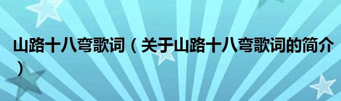 本文關于山路十八彎歌詞的簡介就講解完畢,希望對大家有所幫助。