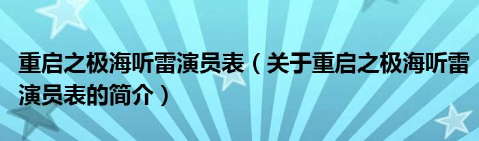 本文關于重啟之極海聽雷演員表的簡介就講解完畢,希望對大家有所幫助。