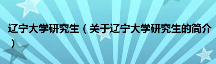 大家好,遼寧大學研究生,關于遼寧大學研究生的簡介很多人還不知道,現(xiàn)在讓我們一起來看看吧!