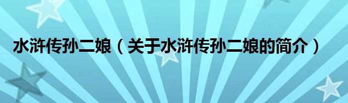 本文關于水滸傳孫二娘的簡介就講解完畢,希望對大家有所幫助。