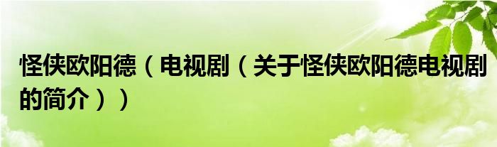 本文關于怪俠歐陽德 電視劇的簡介就講解完畢,希望對大家有所幫助。