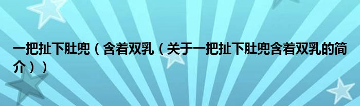 大家好,一把扯下肚兜 含著雙乳,關于一把扯下肚兜 含著雙乳的簡介很多人還不知道,現在讓我們一起來看看吧!