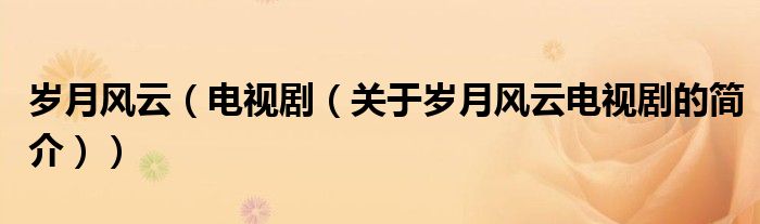 本文關于歲月風云 電視劇的簡介就講解完畢,希望對大家有所幫助。