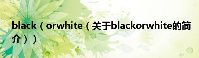 本文關于black or white的簡介就講解完畢,希望對大家有所幫助。