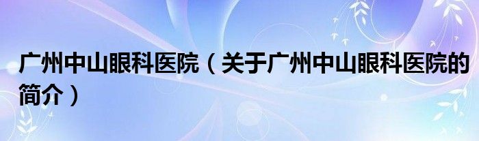 本文關于廣州中山眼科醫院的簡介就講解完畢,希望對大家有所幫助。