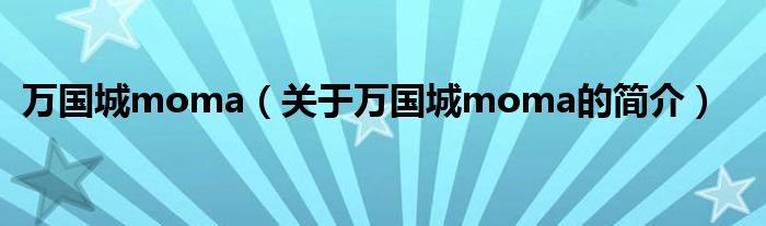 大家好,萬國城moma,關于萬國城moma的簡介很多人還不知道,現在讓我們一起來看看吧!