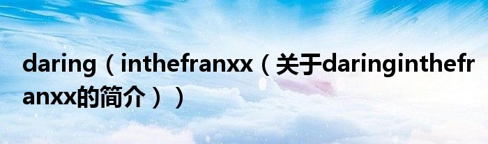 本文關于daring in the franxx的簡介就講解完畢,希望對大家有所幫助。
