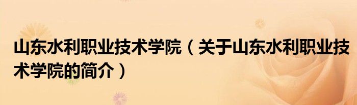 本文關于山東水利職業(yè)技術學院的簡介就講解完畢,希望對大家有所幫助。