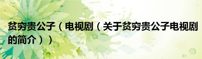 本文關(guān)于貧窮貴公子 電視劇的簡介就講解完畢,希望對大家有所幫助。