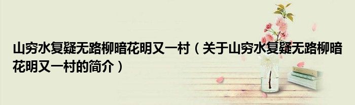 本文關于山窮水復疑無路柳暗花明又一村的簡介就講解完畢,希望對大家有所幫助。