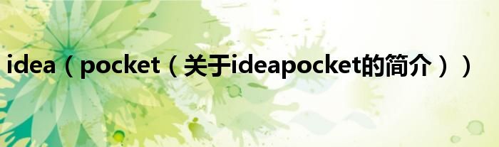 大家好,idea pocket,關于idea pocket的簡介很多人還不知道,現在讓我們一起來看看吧!