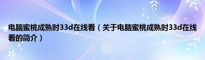 本文關于電腦蜜桃成熟時33d在線看的簡介就講解完畢,希望對大家有所幫助。