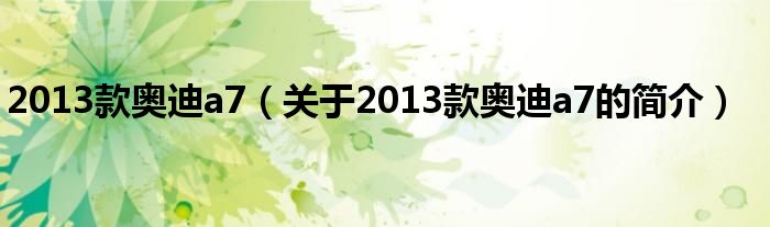 本文關(guān)于2013款奧迪a7的簡介就講解完畢,希望對大家有所幫助。