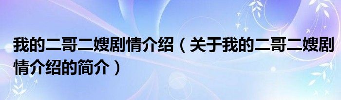 本文關于我的二哥二嫂劇情介紹的簡介就講解完畢,希望對大家有所幫助。