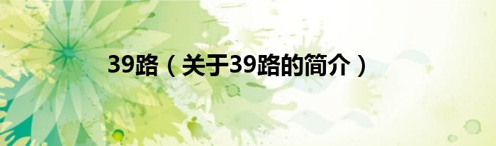 本文關于39路的簡介就講解完畢,希望對大家有所幫助。