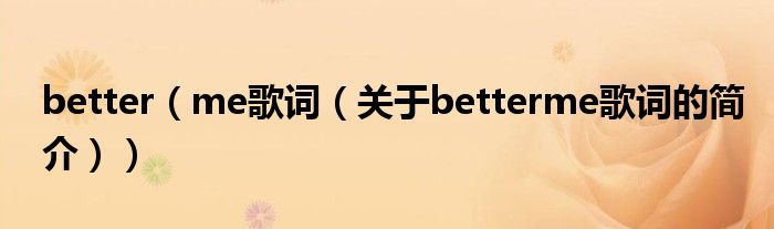 本文關于better me歌詞的簡介就講解完畢,希望對大家有所幫助。