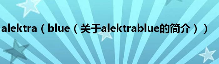 大家好,alektra blue,關于alektra blue的簡介很多人還不知道,現在讓我們一起來看看吧!