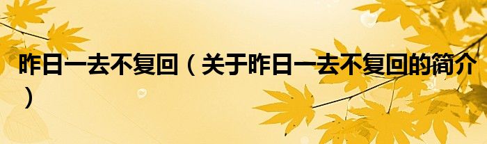 本文關于昨日一去不復回的簡介就講解完畢,希望對大家有所幫助。