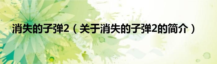 大家好,消失的子彈2,關于消失的子彈2的簡介很多人還不知道,現在讓我們一起來看看吧!