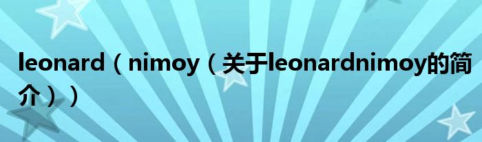 大家好,leonard nimoy,關(guān)于leonard nimoy的簡介很多人還不知道,現(xiàn)在讓我們一起來看看吧!