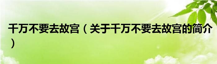 本文關于千萬不要去故宮的簡介就講解完畢,希望對大家有所幫助。