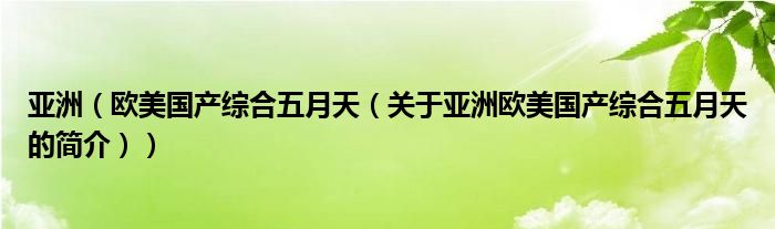 大家好,亞洲 歐美 國產(chǎn) 綜合五月天,關(guān)于亞洲 歐美 國產(chǎn) 綜合五月天的簡介很多人還不知道,現(xiàn)在讓我們一起來看看吧!
