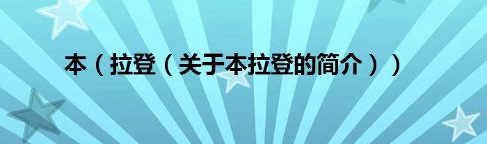 大家好,本 拉登,關于本 拉登的簡介很多人還不知道,現在讓我們一起來看看吧!