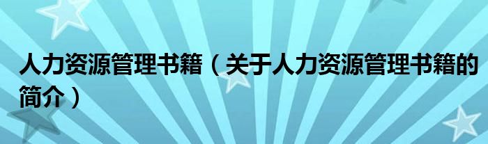 本文關于人力資源管理書籍的簡介就講解完畢,希望對大家有所幫助。