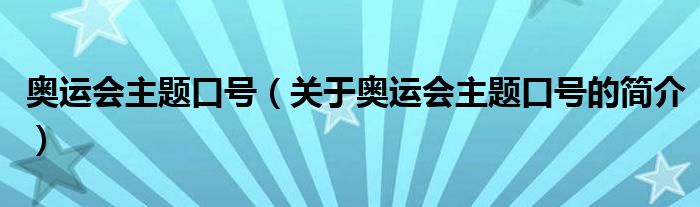 本文關于奧運會主題口號的簡介就講解完畢,希望對大家有所幫助。