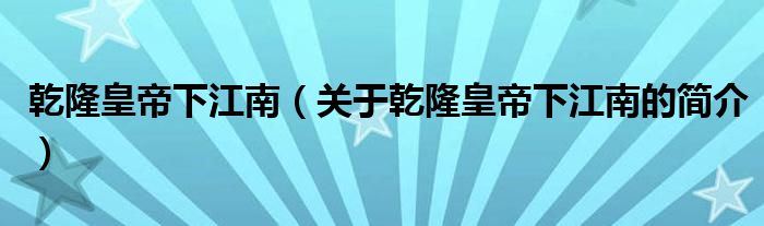 大家好,乾隆皇帝下江南,關(guān)于乾隆皇帝下江南的簡介很多人還不知道,現(xiàn)在讓我們一起來看看吧!