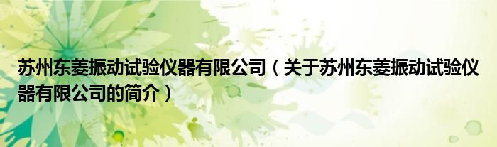 本文關于蘇州東菱振動試驗儀器有限公司的簡介就講解完畢,希望對大家有所幫助。