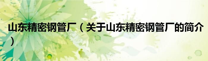 本文關于山東精密鋼管廠的簡介就講解完畢,希望對大家有所幫助。