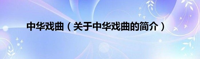 本文關于中華戲曲的簡介就講解完畢,希望對大家有所幫助。