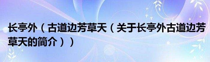 本文關(guān)于長(zhǎng)亭外 古道邊 芳草天的簡(jiǎn)介就講解完畢,希望對(duì)大家有所幫助。