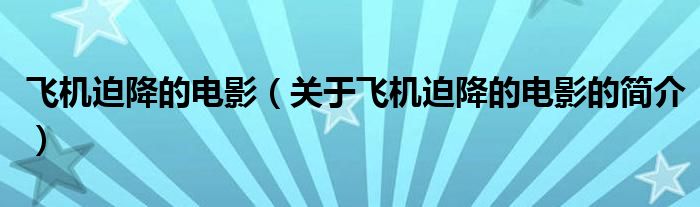 本文關于飛機迫降的電影的簡介就講解完畢,希望對大家有所幫助。