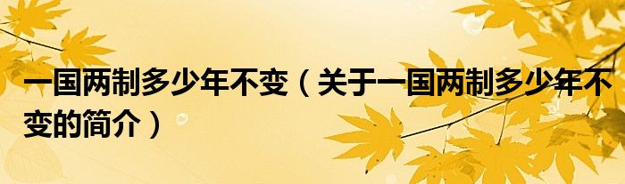 本文關于一國兩制多少年不變的簡介就講解完畢,希望對大家有所幫助。