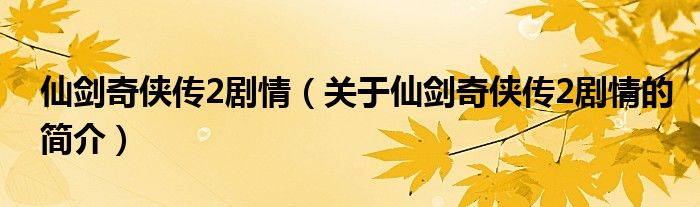 本文關于仙劍奇俠傳2劇情的簡介就講解完畢,希望對大家有所幫助。