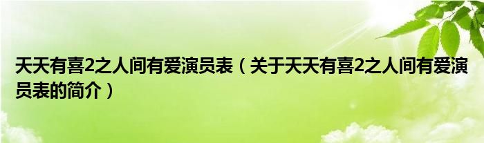 本文關于天天有喜2之人間有愛演員表的簡介就講解完畢,希望對大家有所幫助。