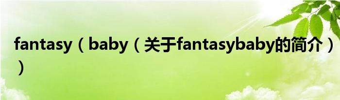 大家好,fantasy baby,關于fantasy baby的簡介很多人還不知道,現在讓我們一起來看看吧!